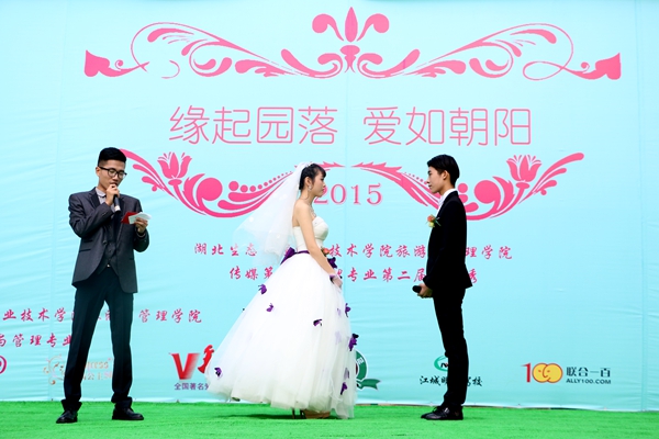 婚礼怎么办到学校来了,没错,就是“婚礼”,而且不是普通的“婚礼”,而是有策划、有走台、有展示、有告白、有表演、有喝彩、有祝福的“婚礼秀”。当然这不是时下明星的“婚礼秀”,而是学校旅游与管理学院课堂教学的现场。此次“婚礼秀”已经是第二届了,它涉及摄影摄像、图文制作、婚俗文化与场景布置、婚庆庆典主持、音频视频制作、餐饮服务、宴会设计等多门课程。“婚礼秀”的前期筹备、婚礼现场和后期制作也完整再现了婚庆专业实际岗位的工作流程。这样100%的实践教学受到同学们的一致好评,参与度和关注度也达到了前所未有的高,现场围观的同学纷纷拿着手机拍下精彩画面,而同学们的朋友圈上,“婚礼秀”的照片更是刷屏。