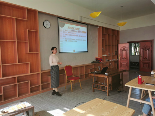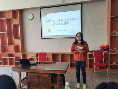 旅游管理学院教学副院长鲍婷做开场宣讲,介绍了八马企业和本次授课导师的基本情况。