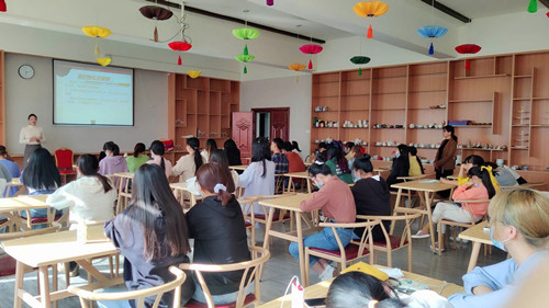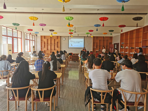旅游管理学院院长袁芬与2019级茶艺与茶叶营销专业、2019级酒店专业全体学生齐聚茶艺实训室,认真聆听八马茶业导师讲授《企业文化》。该课程为校企共建课程,旨在培养学生的职业道德和职场礼仪。