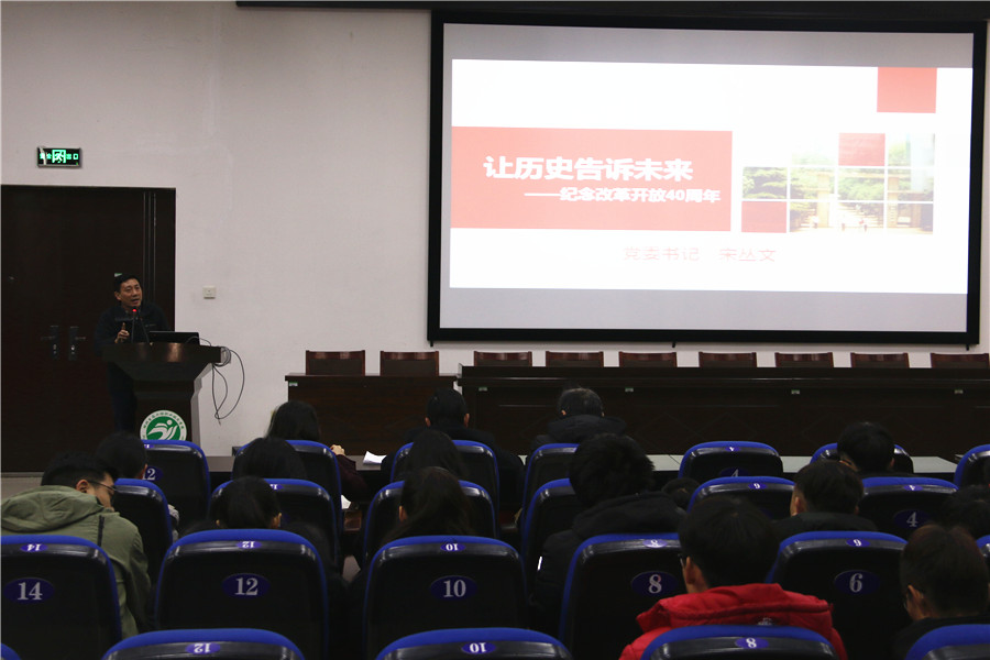 学校党委书记宋丛文表示:在历史中前进,在时代中发展。40年来,中国发生了翻天覆地地变化。彼时还是青年的我,现如今也已步入中老年。我见证了改革开放给我们国家、时代和个人所带来的变化,也体悟了改革开放40年的宝贵经验,那就是必须坚持党对一切工作的领导。历史不会终结,奋斗未有穷期。新时代,新征程。我们要在以习近平同志为核心的党中央领导下,继续高举改革开放的大旗,将这场伟大革命进行到底,中国一定会有让世界刮目相看的新的更大奇迹!