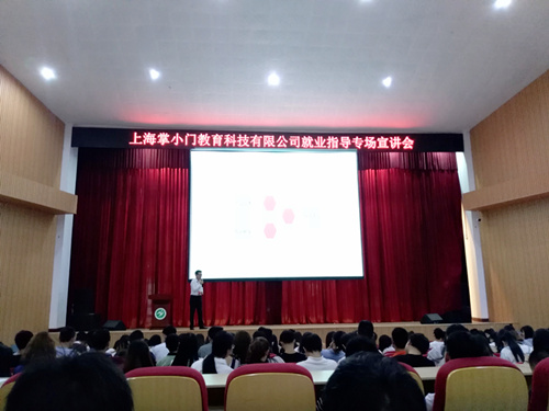 5月10日下午2点,上海掌小门教育科技有限公司在我校大礼堂为我校16级市场营销等多个专业的学生开展了就业指导专场宣讲会。