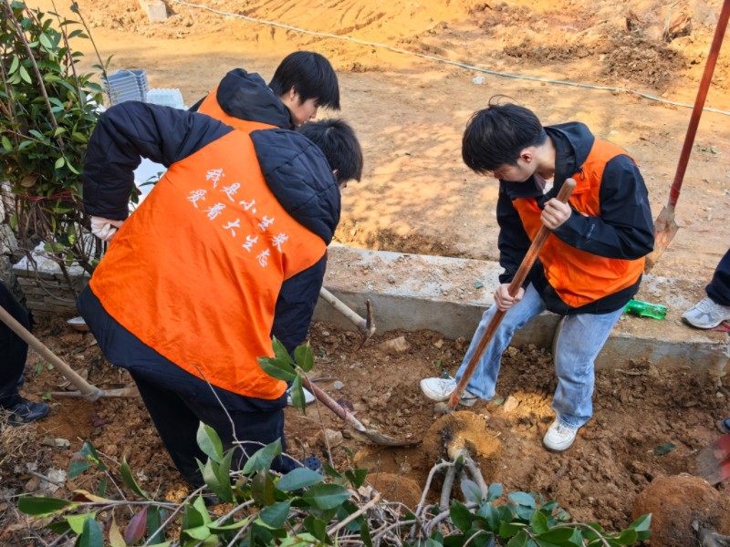活动现场,师生们分工协作、默契配合,挥锹铲土、扶苗定植、培土围堰、提水浇灌,每一个环节都认真细致、井然有序。大家以劳动践行初心,用双手播种绿意,现场洋溢着团结协作、昂扬向上的青春气息。