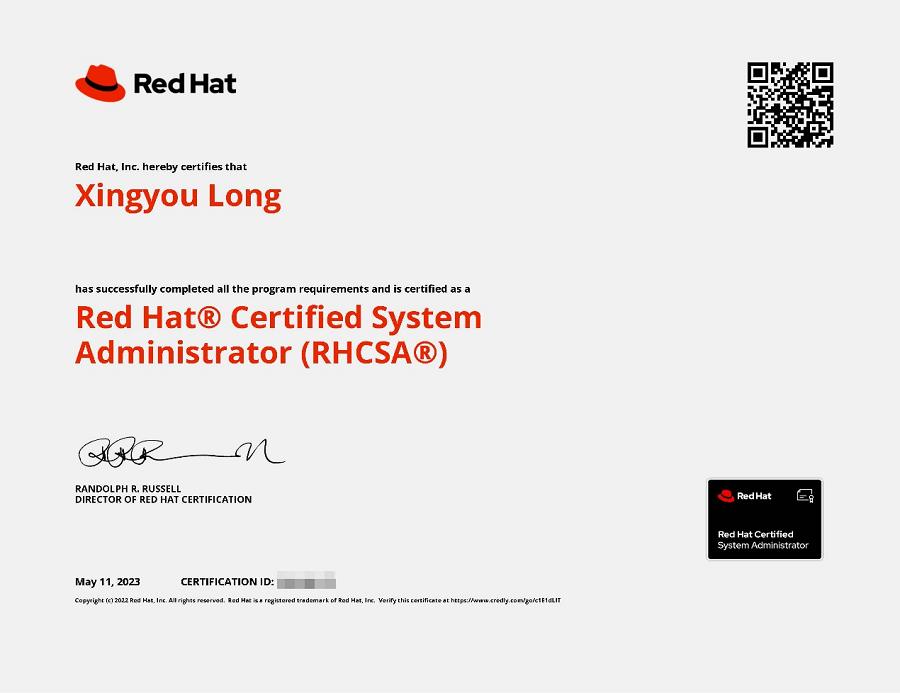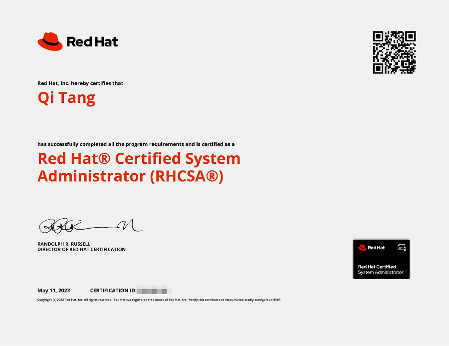 学生考取的红帽认证工程师(RHCSA)