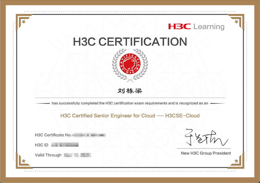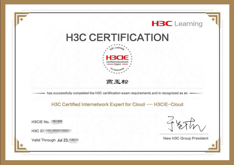 学生考取的H3C认证高级云计算工程师(H3CSE-Cloud)