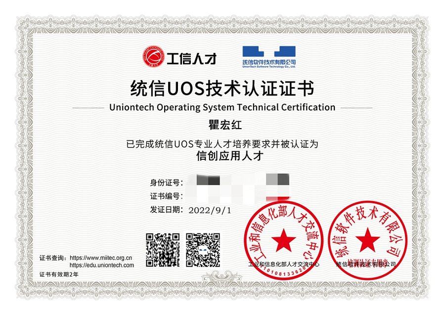 职称/职业资格认证:初教/高级网络与信息安全工程师/统信UOS技术认证证书/阿里云Apsara Clouder证书。