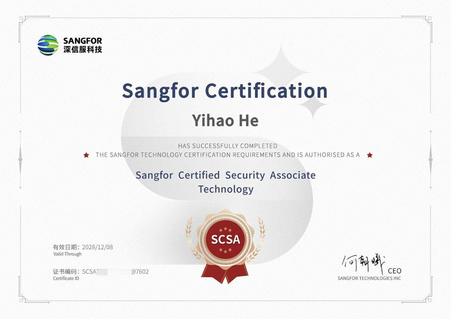 学生考取深信服认证安全工程师(SCSA—T)