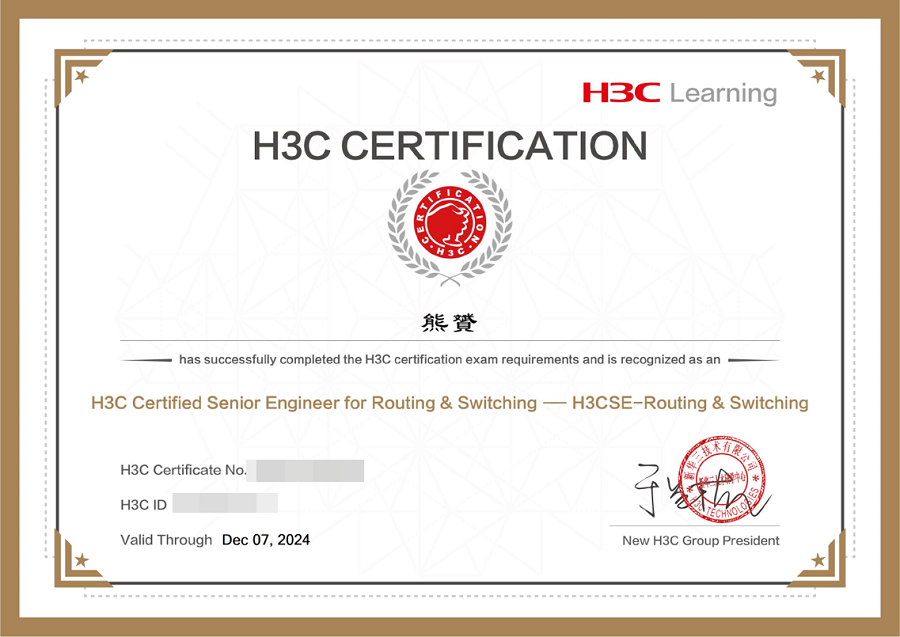 职称/职业资格认证:H3CIE新华三认证讲师