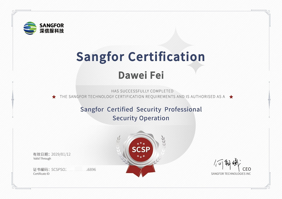 学生考取深信服认证资深安全工程师(SCSP—T)